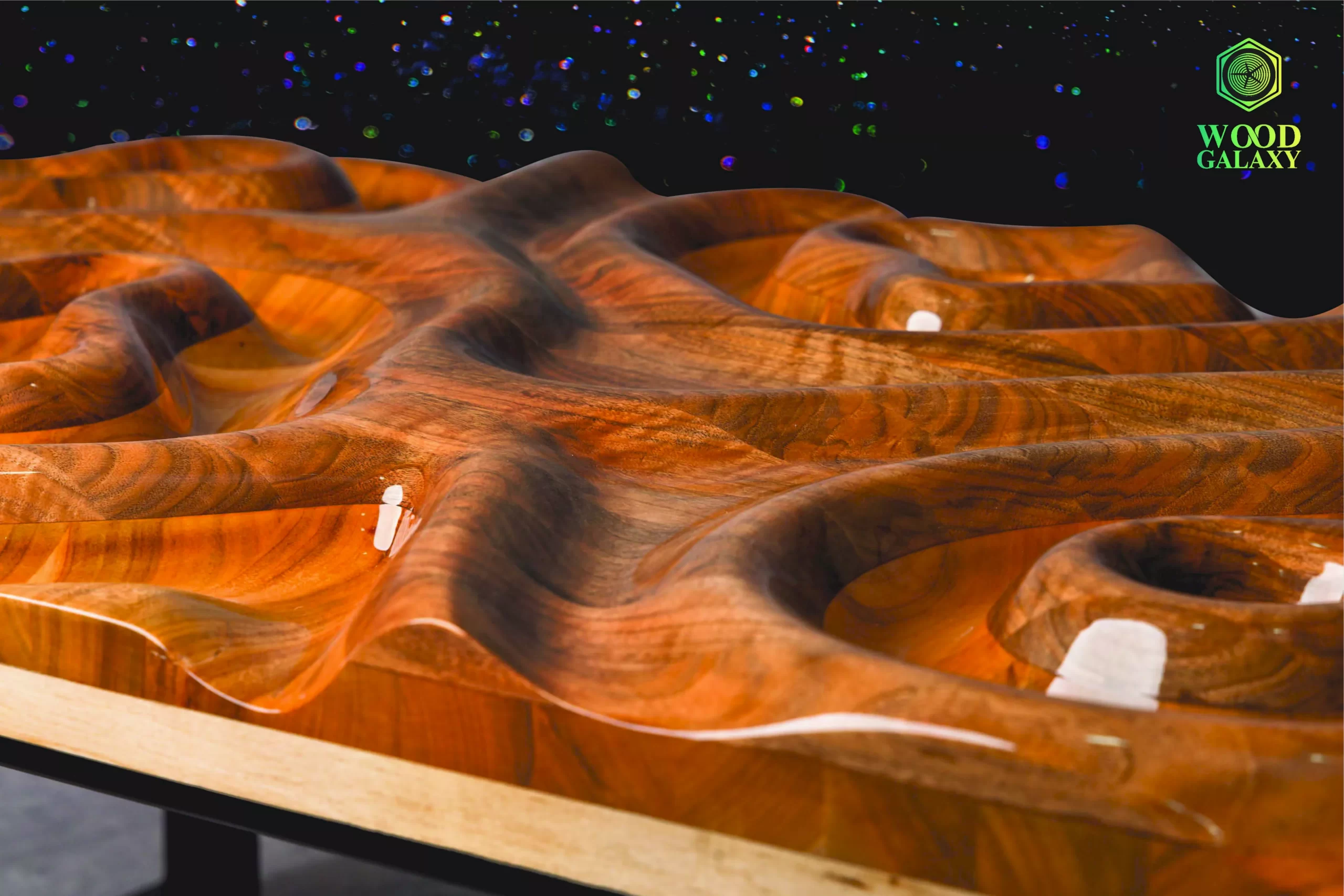 Experience the beauty of exotic wood with the Infinity rectangular coffee table. Made from a stunning combination of walnut and cherry wood, this designer wooden coffee table is a true masterpiece. Featuring a unique artistic design and a glass top, it’s the perfect addition to your luxury living room furniture. Each piece is handcrafted with premium craftsmanship, making it a one-of-a-kind addition to your home decor.