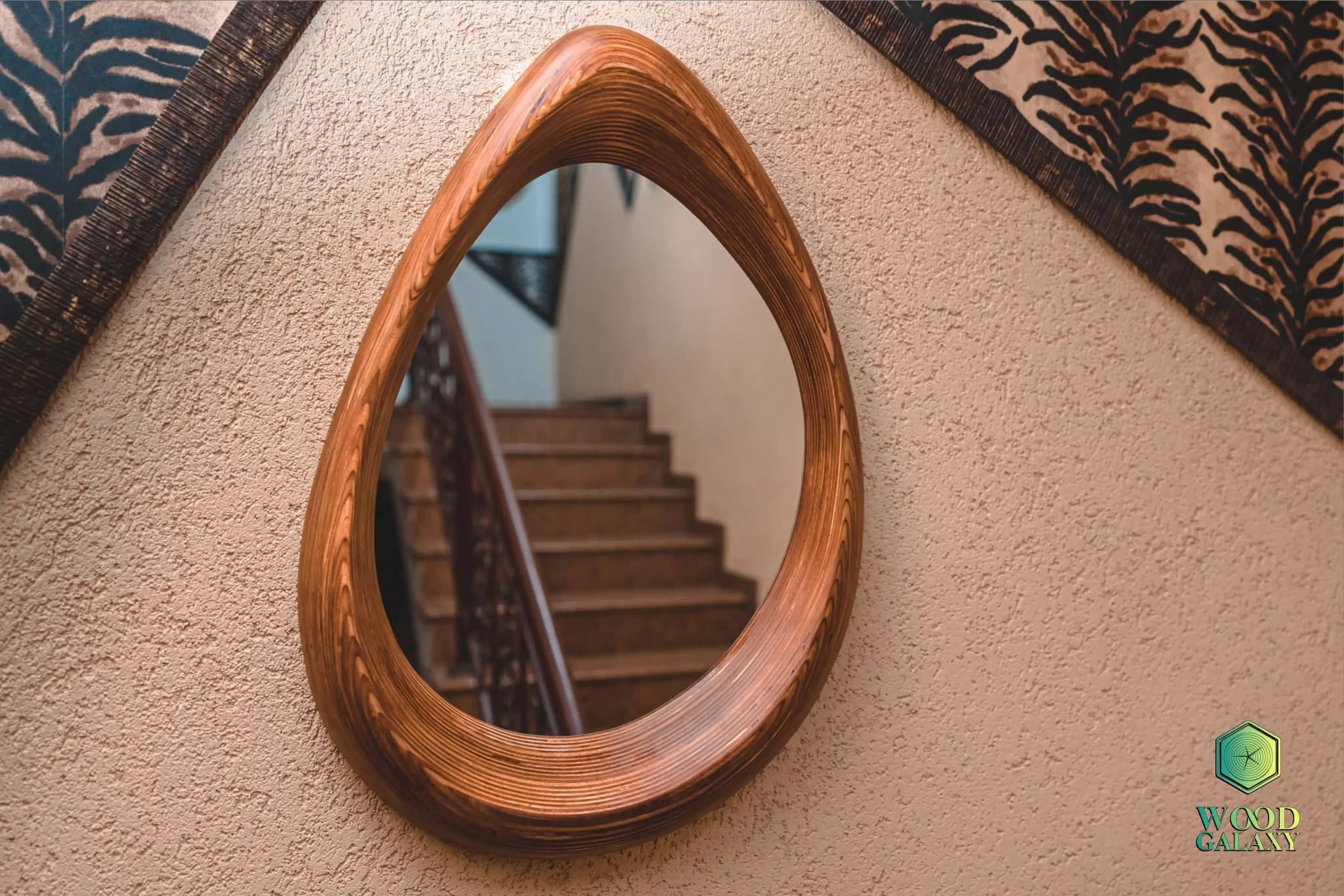 La Terra’s contemporary teardrop wall mirror. Its sleek wooden frame adds elegance to any space, making it perfect for bedrooms, hallways, and bathrooms.